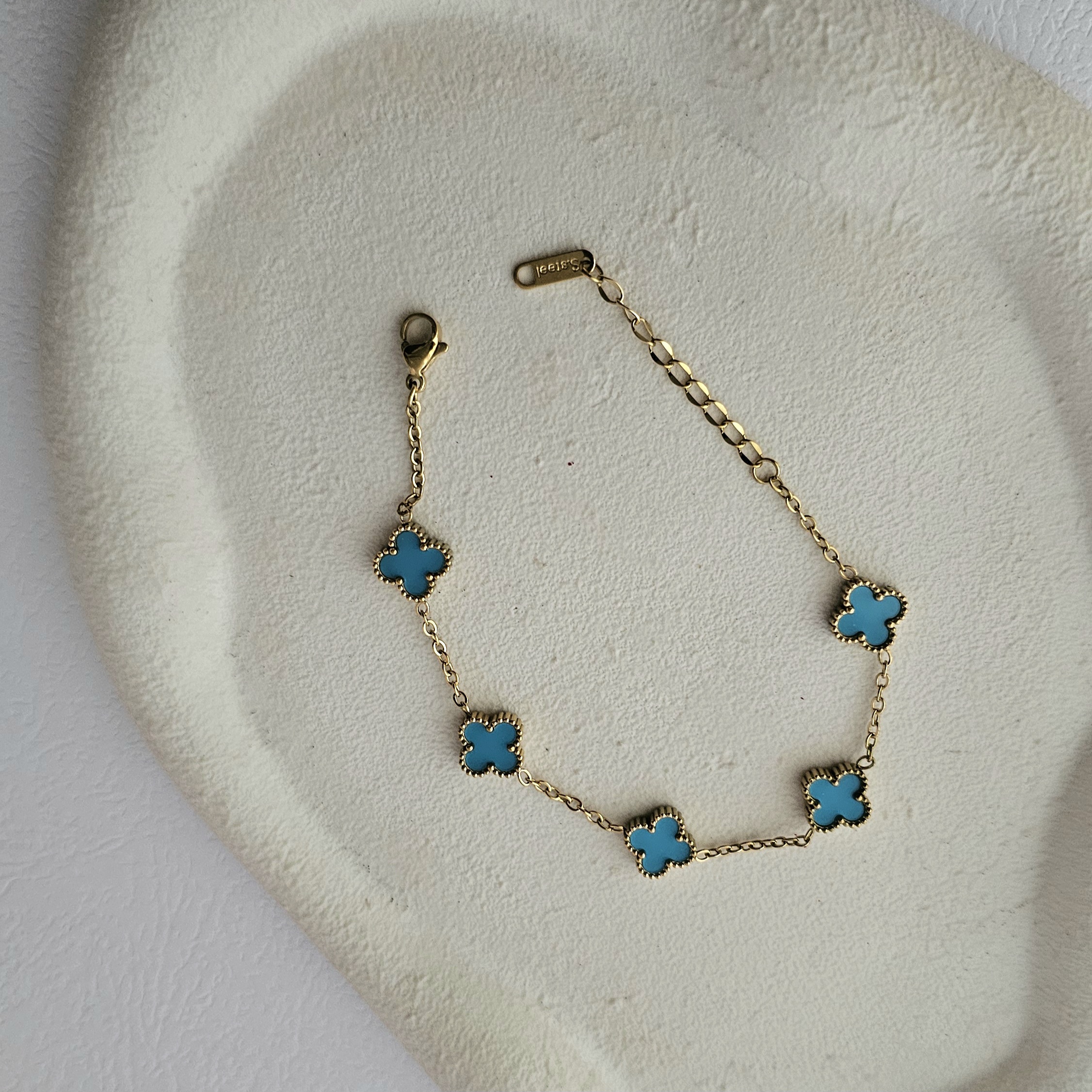 ناموجوددستبند ونکلیف پنج گل آبی برند استیل