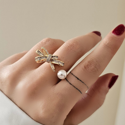 ناموجودانگشتر پاپیون مروارید زنانه برند CM