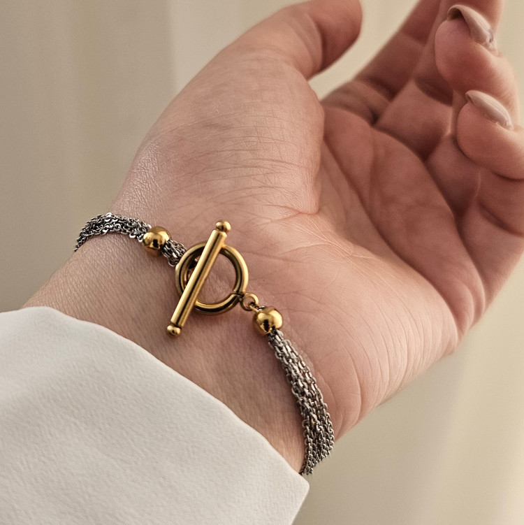 دستبند قفل تی سیلور زنانه استیل