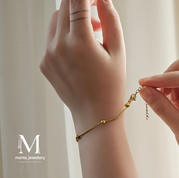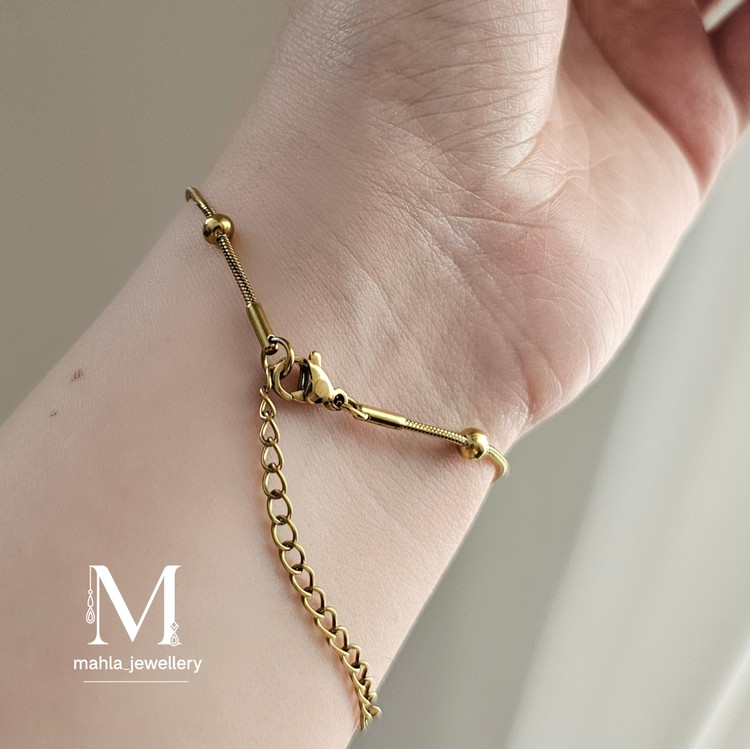 دستبند ۲۲ سانت (میتونی به جا پابند هم استفاده کنی) دارای ۵ سانت زنجیر تنظیم سایز
