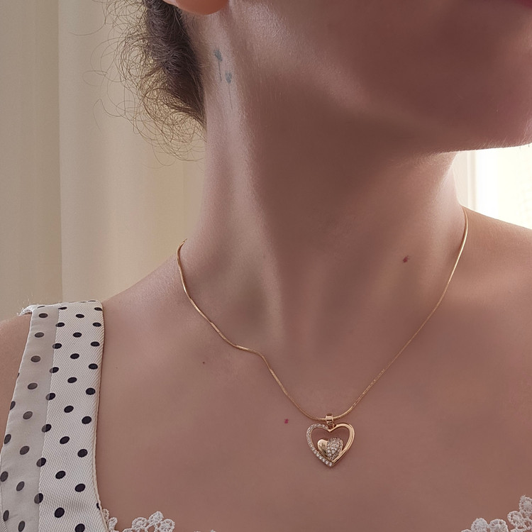 گردنبند زنانه ژوپینگ رنگ ثابت مدل قلبی زنجیر 45 سانتی
