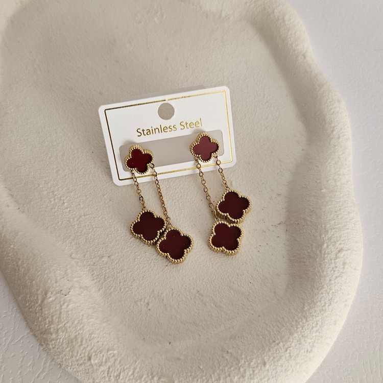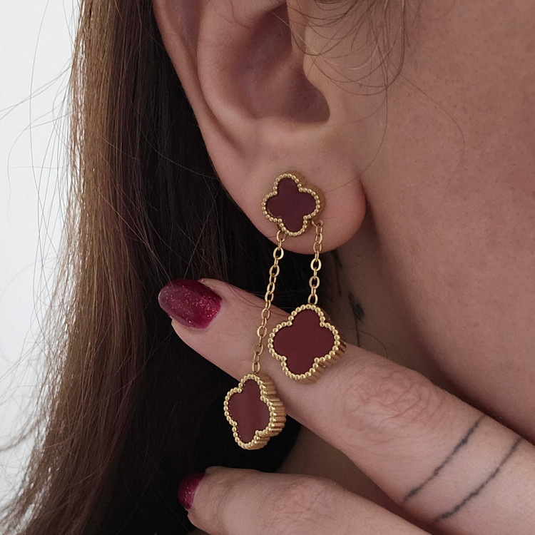 گوشواره ونکلیف زرشکی برند استیل