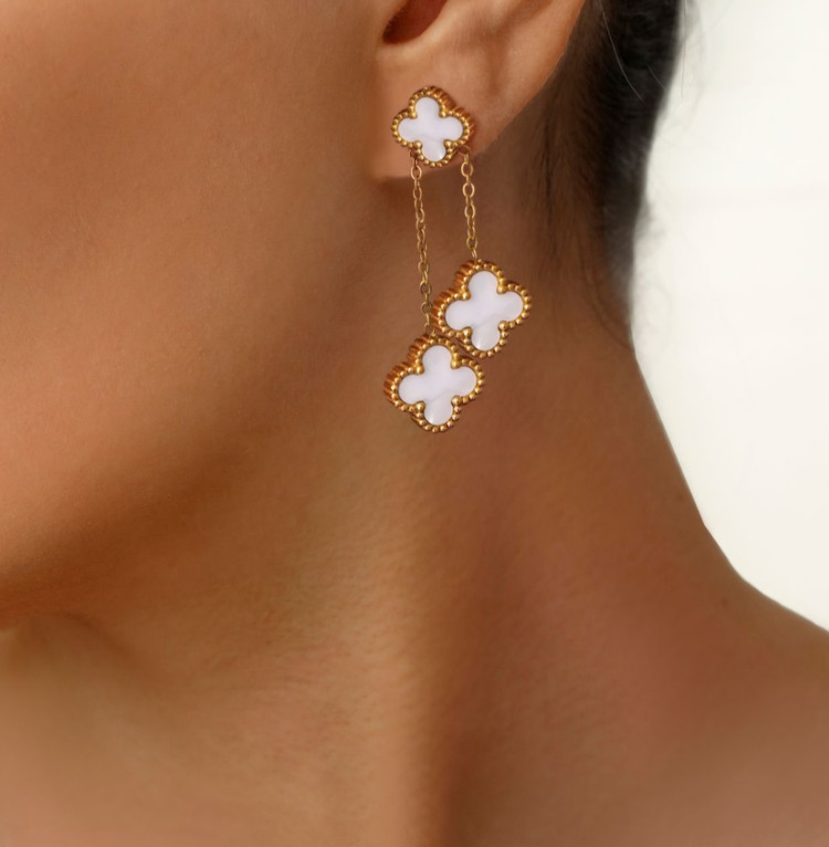 گوشواره آویز ونکلیف سفید برند استیل