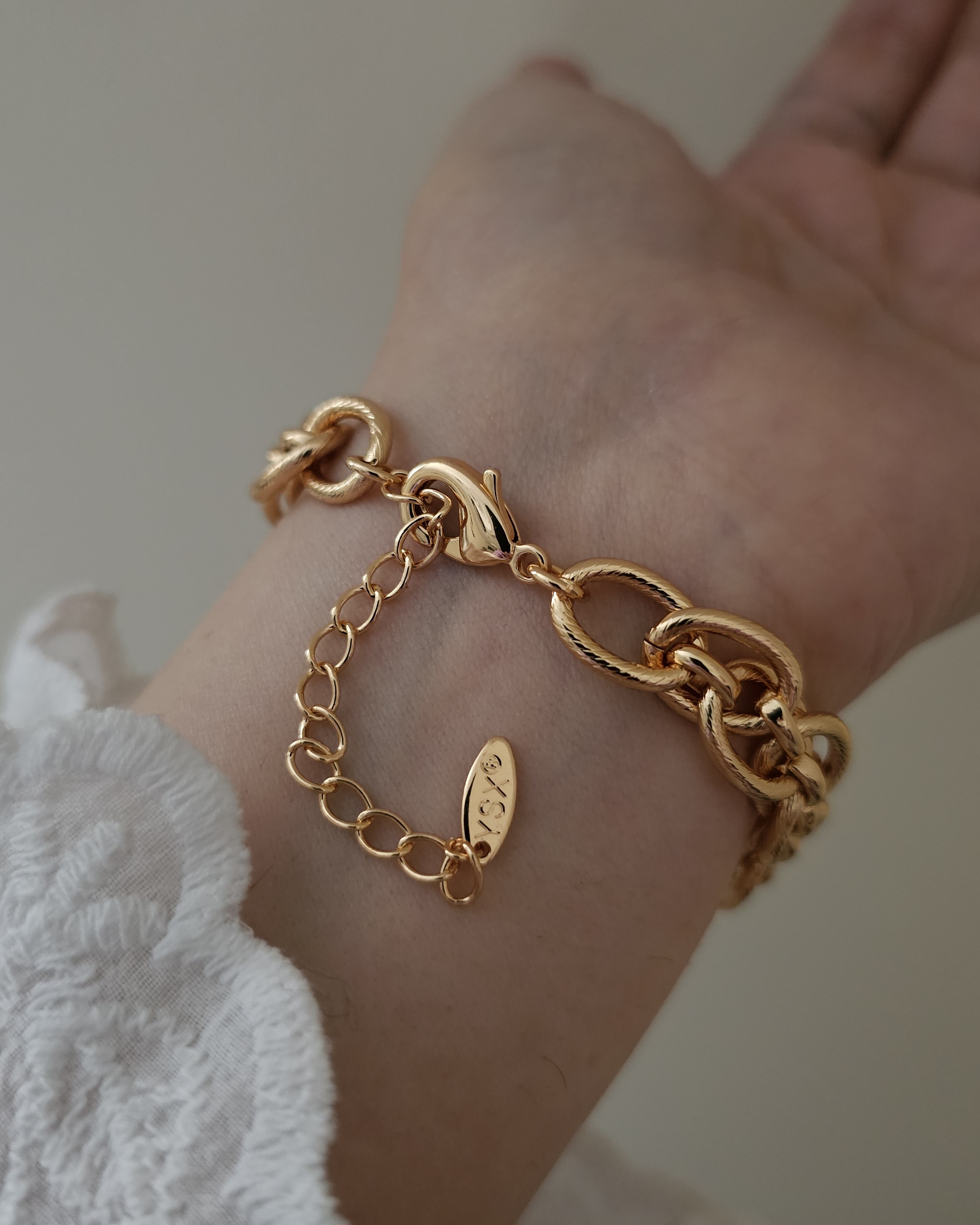 طول دستبند ۱۸ سانت ، ۵ سانت زنجیر سایزر از برند ysx و آبکاری طلا و بدون حساسیت قفل پروانه ای بسیار محکم