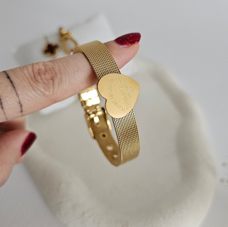 دستبند پهن تیفانی مدل قلب طلایی