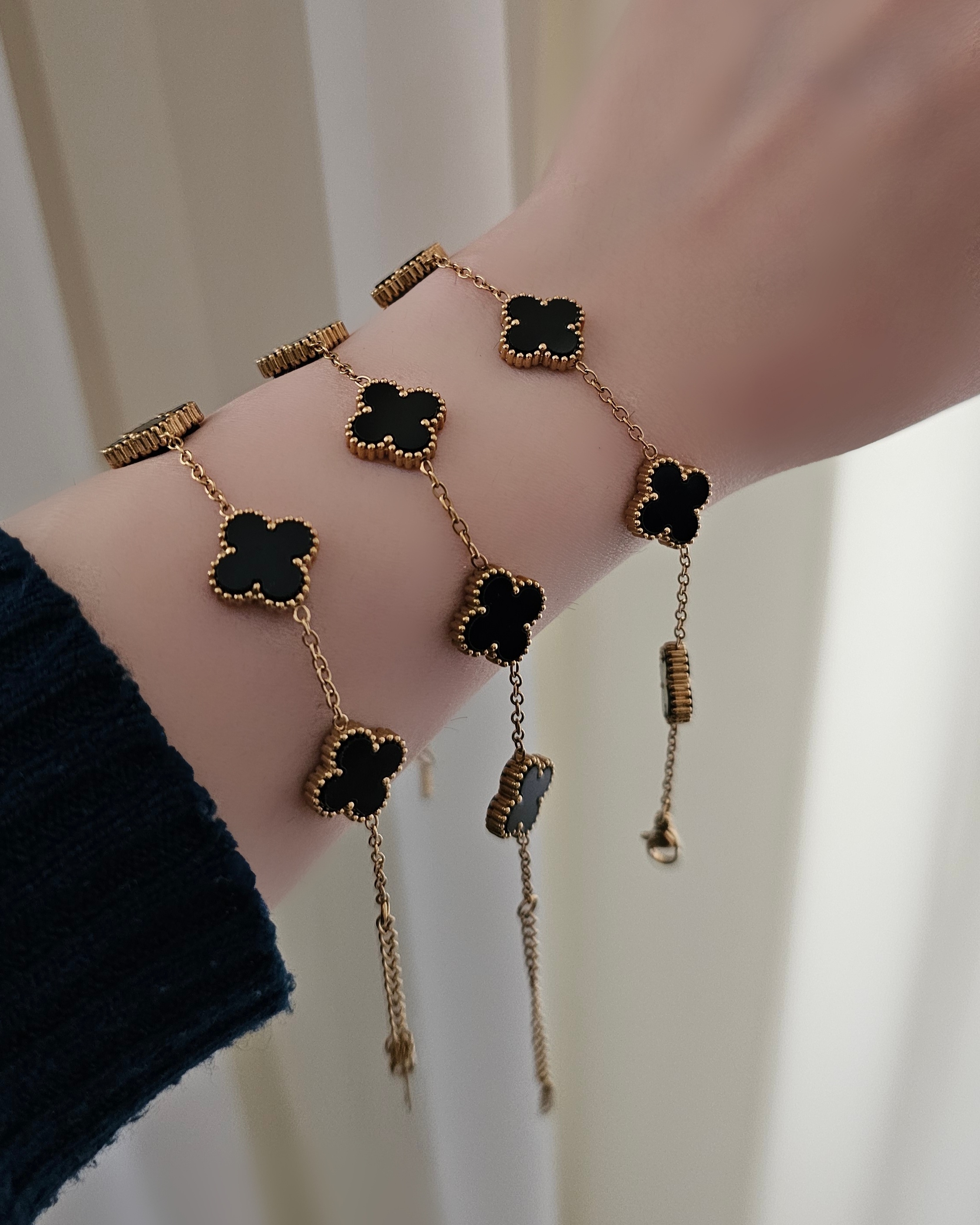 دستبند پنج گل ونکلیف مشکی با حک برند استیل