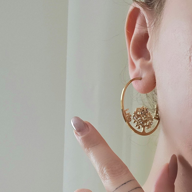 گوشواره طلایی زنانه استیل طرح درخت زندگی