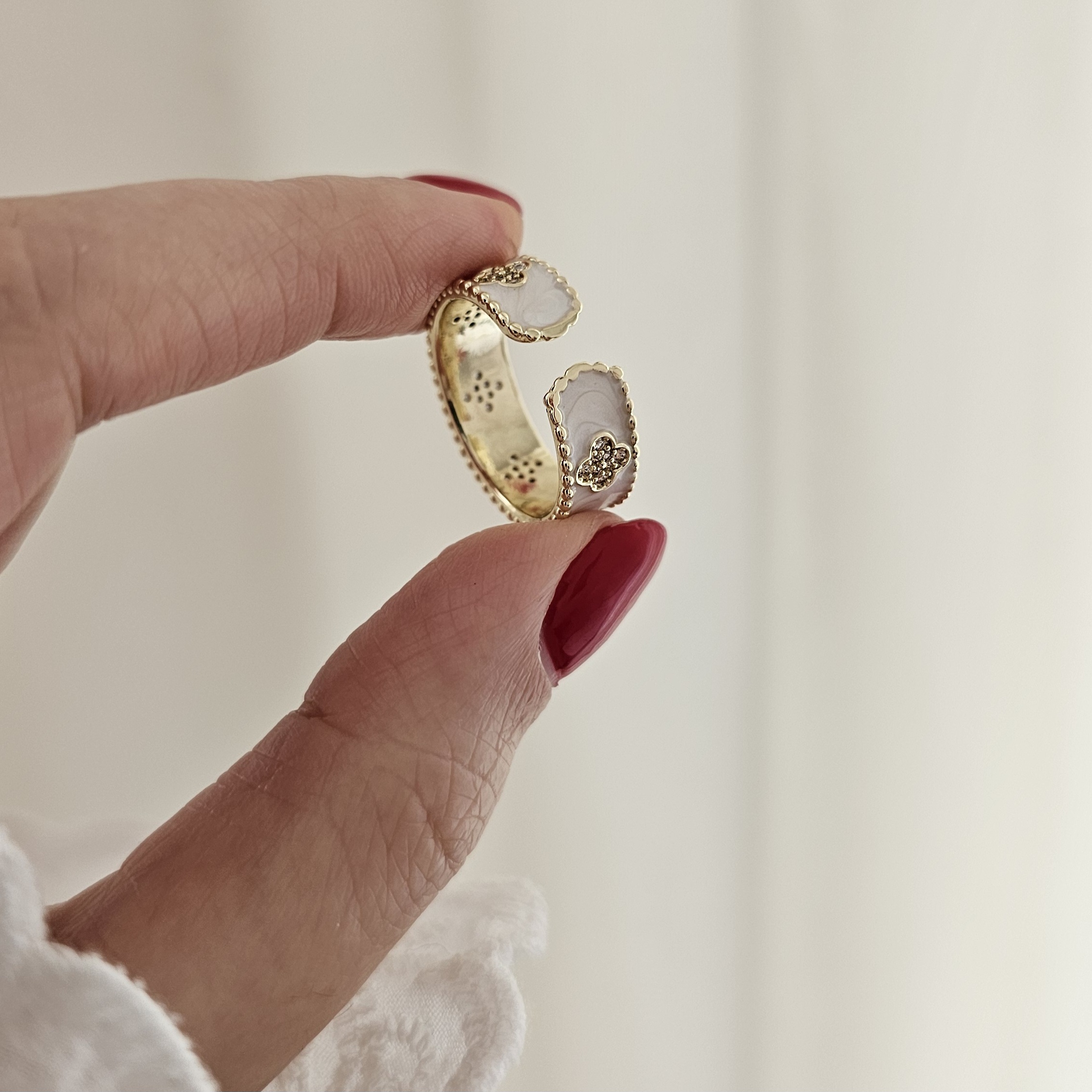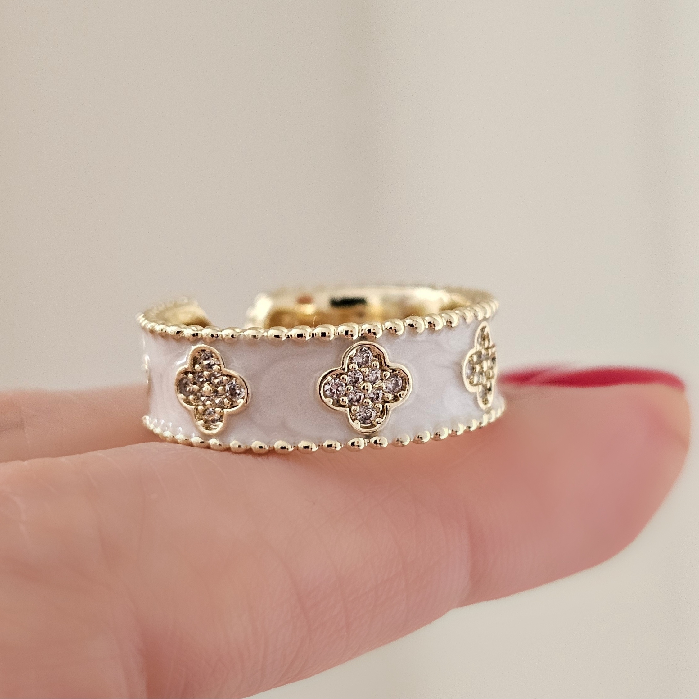 انگشتر ونکلیف سفید با گلهای گلد و فول نگین نگین مخراجکاری شده و بدون ریزش فری سایز و آبکاری رادیوم رنگثابت و ضد حساسیت