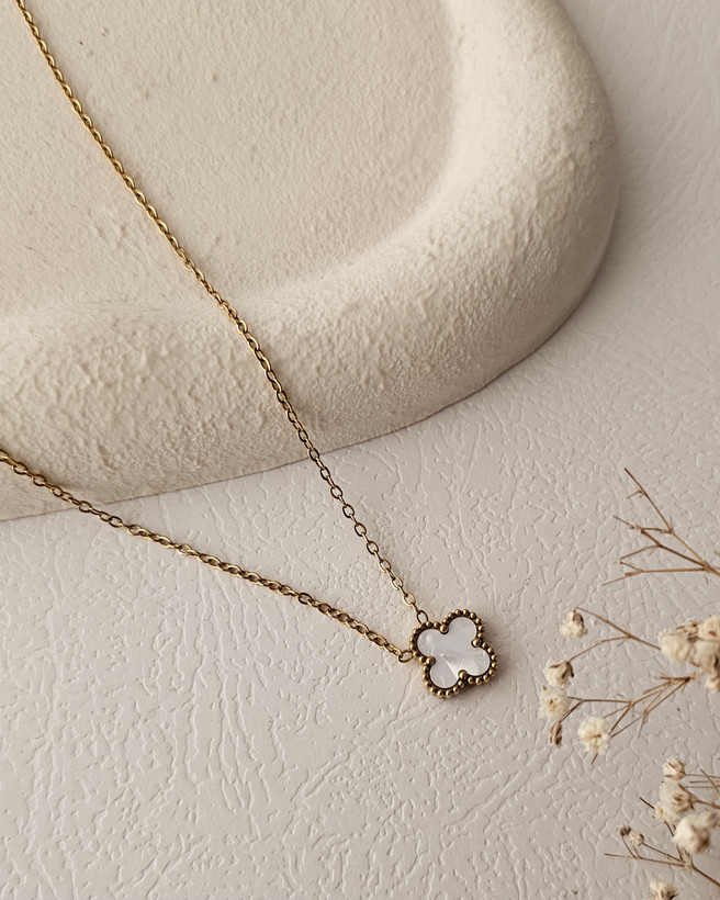 گردنبند ونکلیف تک گل سفید برند استیل