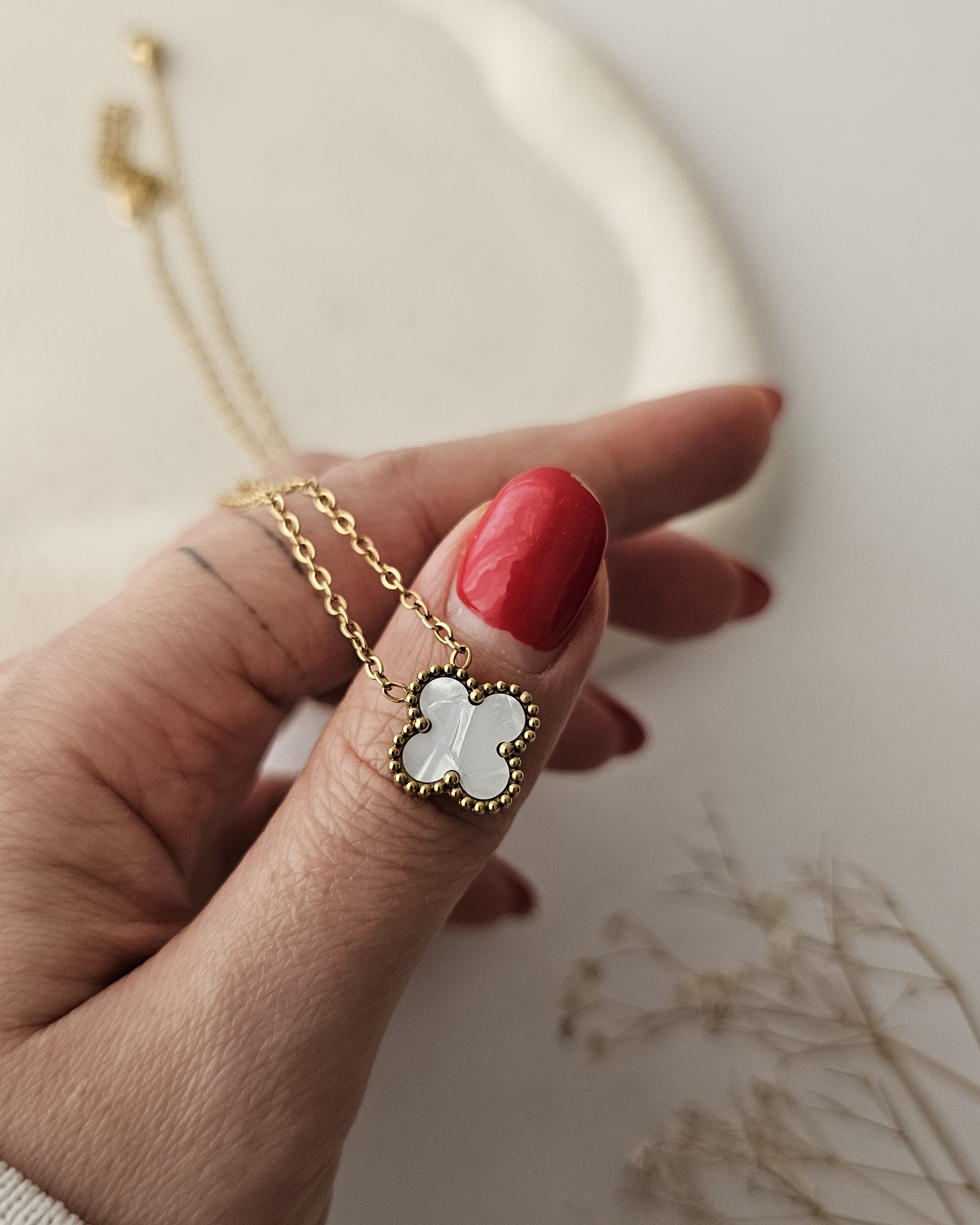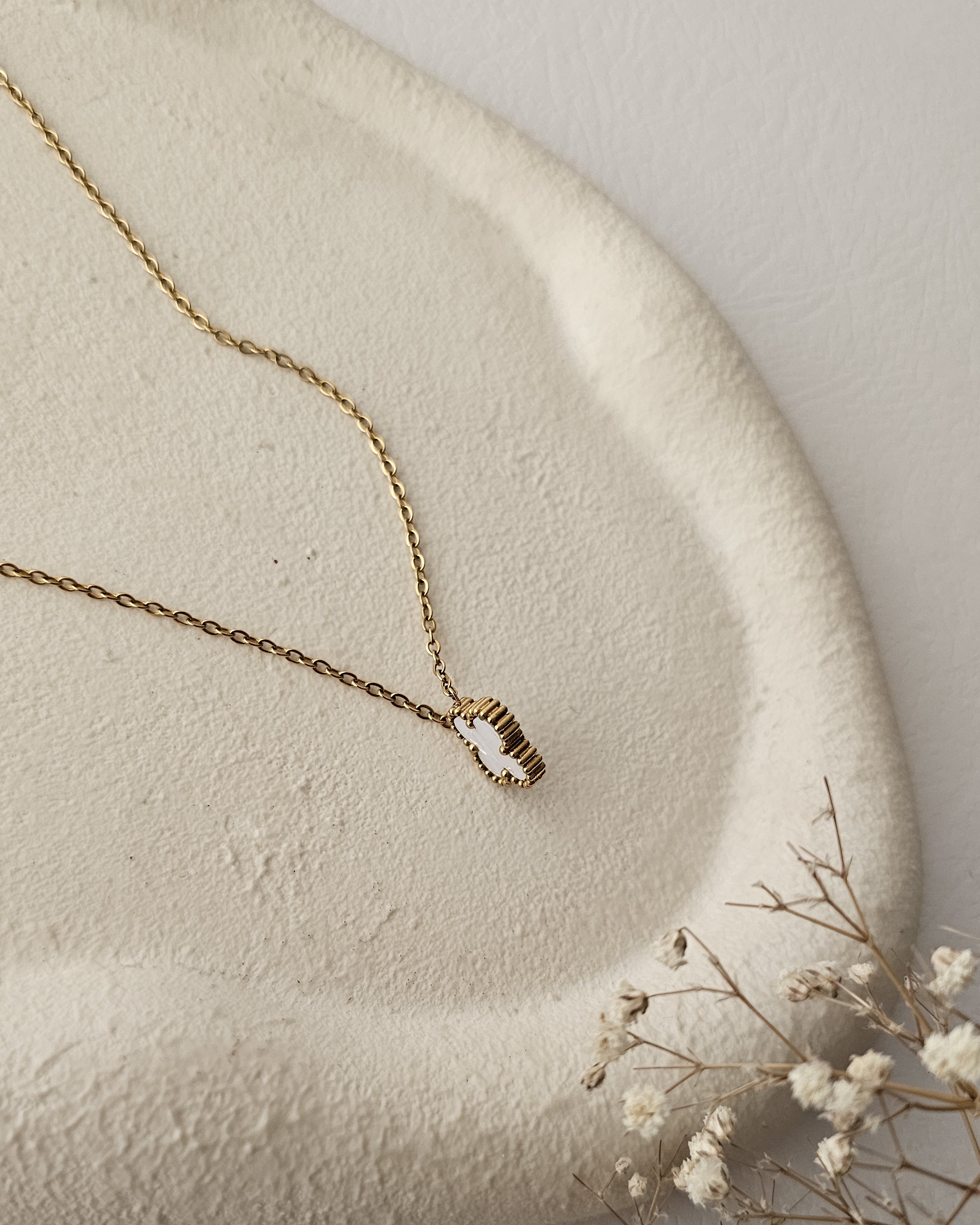 گردنبند ونکلیف تک گل سفید برند استیل
