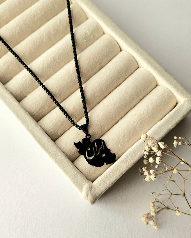 گردنبند و پلاک طرح نقشه ایران به رنگ سیاه مناسب آقایان و بانوان