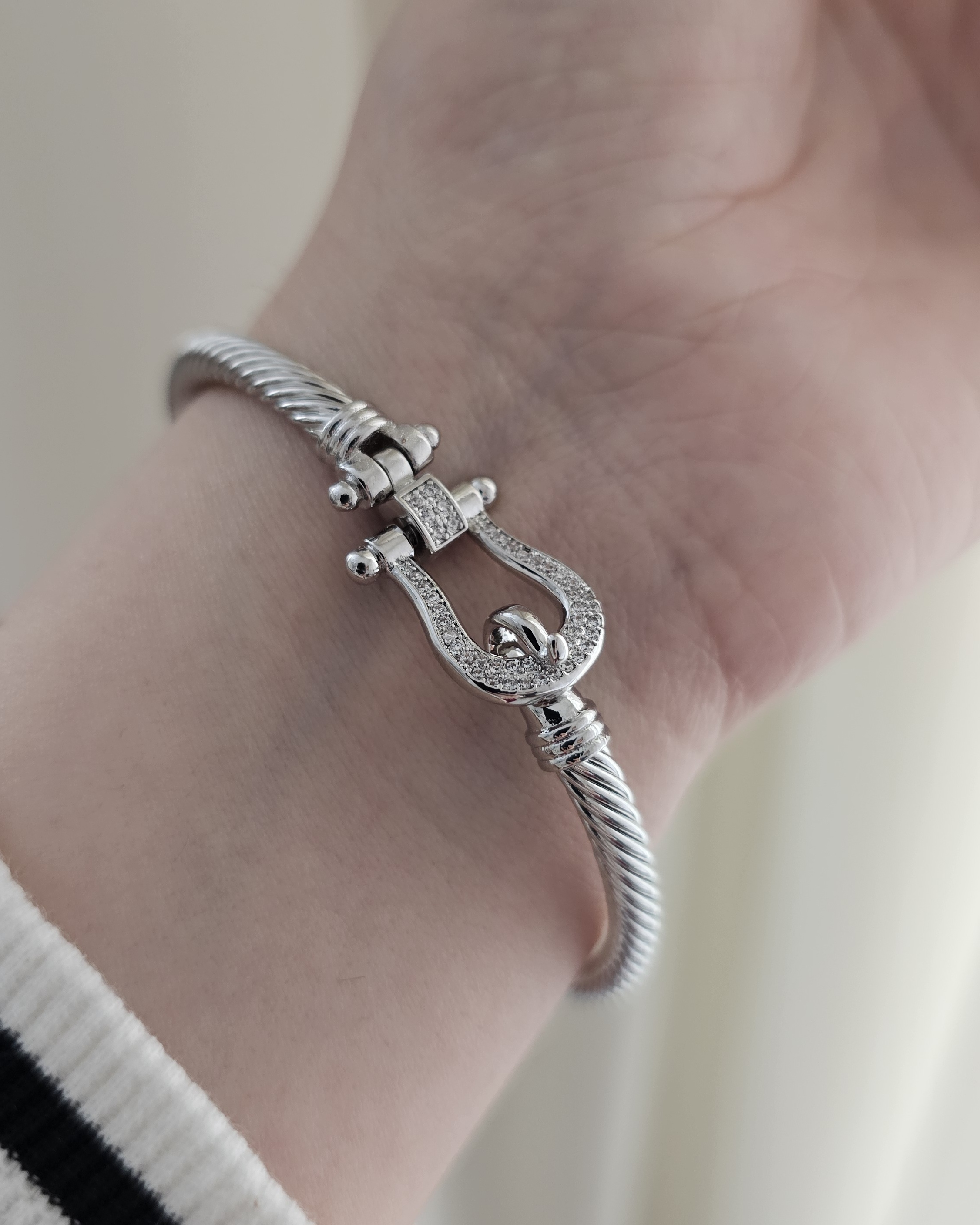 دستبند النگویی فرد سیلور طرح طلا دارای آبکاری طلا ۱۸ عیار و بدون حساسیت رنگ طلایی نیز داخل سایت موجود هست برند وارداتی ysx فری سایز و نگین مخراجکاری شده مدل قفل رو ورق بزنید و ببینید.