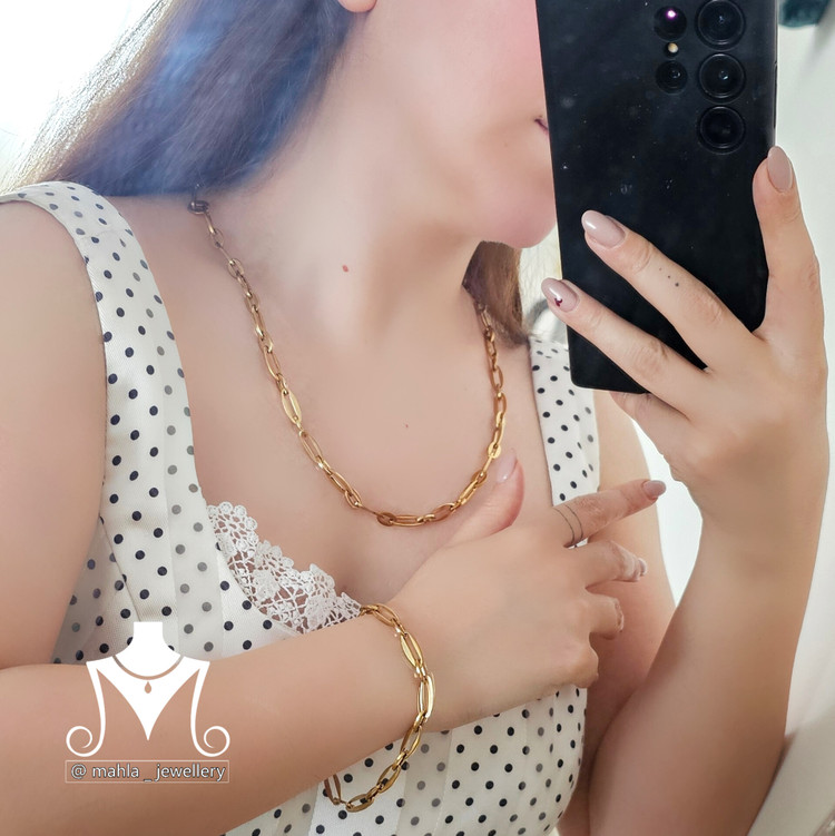 نیم ست طلایی و رنگ ثابت زنانه شامل گردنبند و دستبند