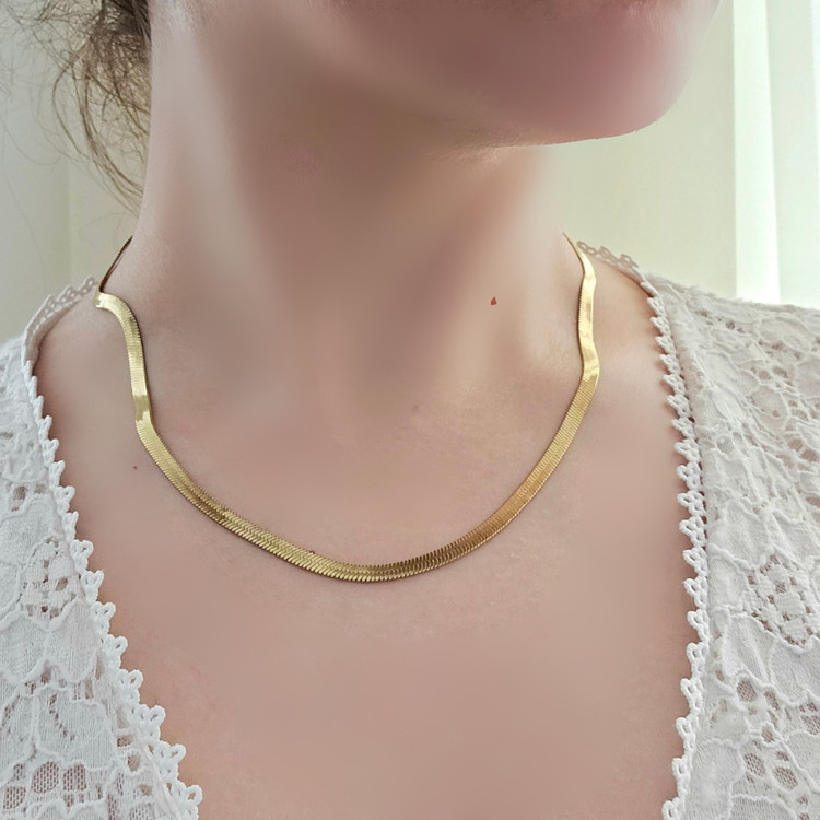 گردنبند هرینگبون طلایی زنانه برند استیل